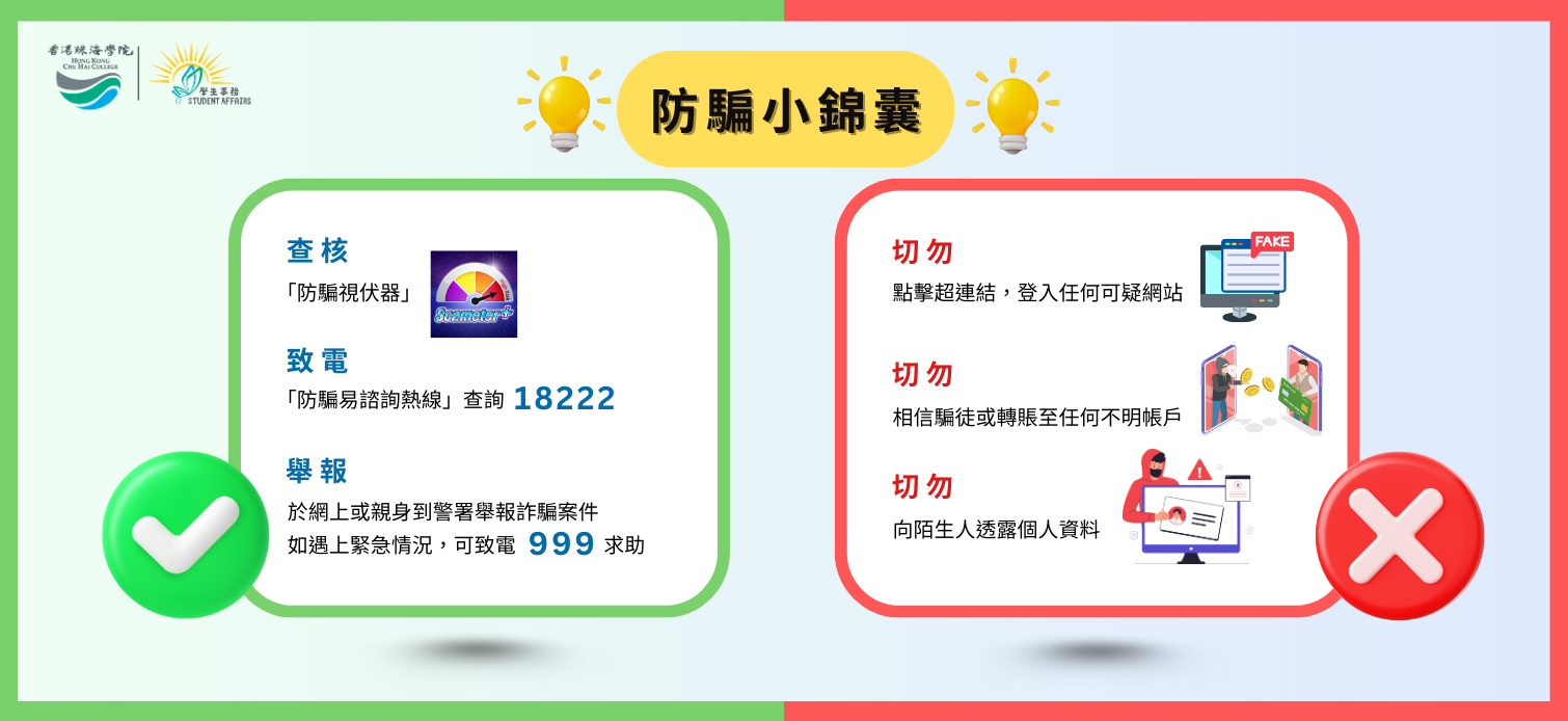 - 致電防騙易18222熱線(24小時反詐騙諮詢服務,僅提供諮詢)