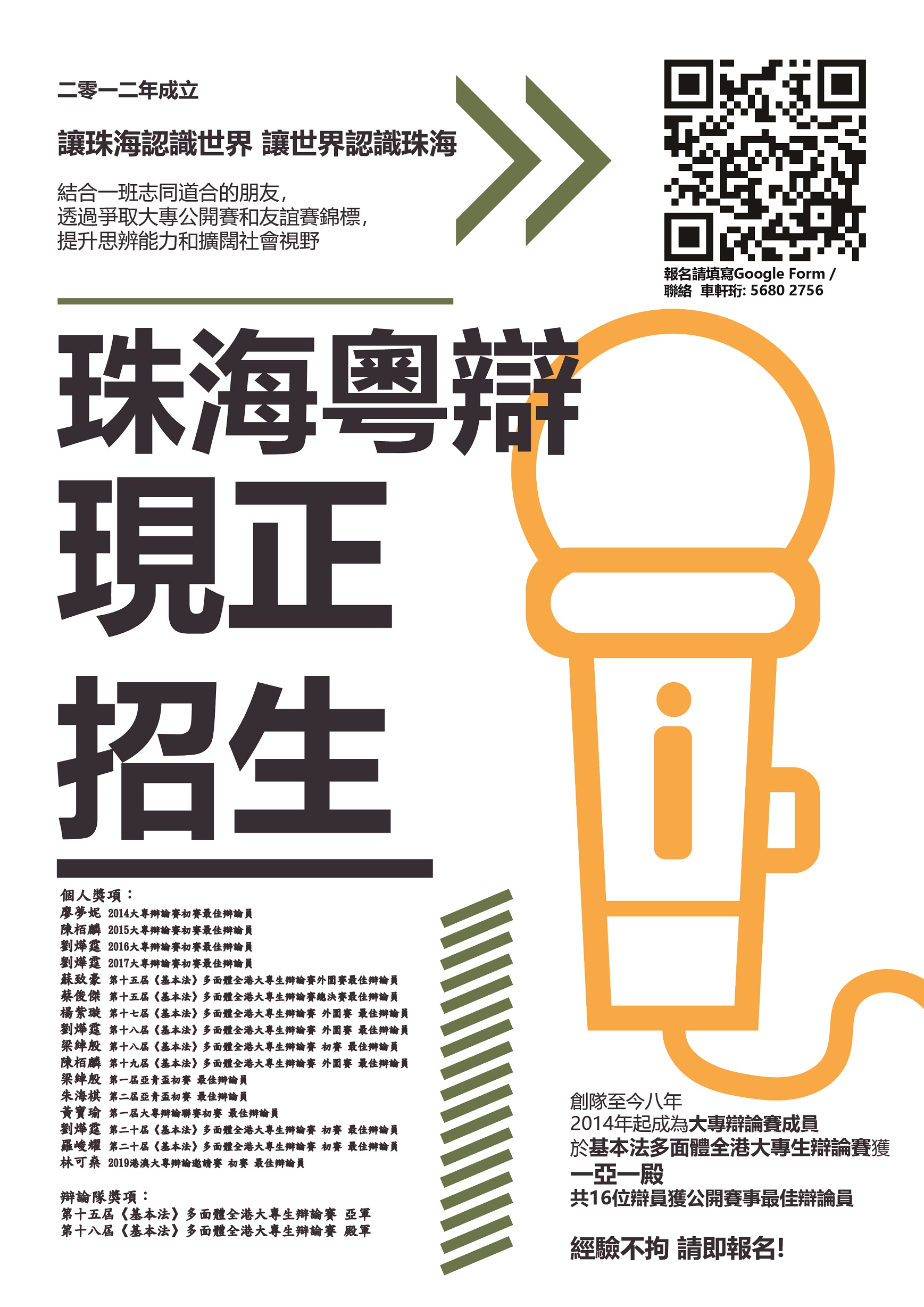 如果你有興趣挑戰自己、學習更多演譯同思辯技巧,就快啲報名參加珠海粵辯啦!