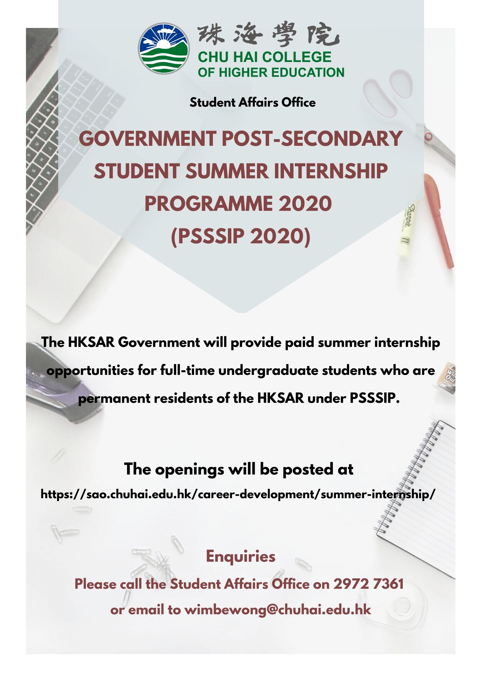 Government Post-Secondary Student Summer Internship Programme 2020 (PSSSIP 2020)