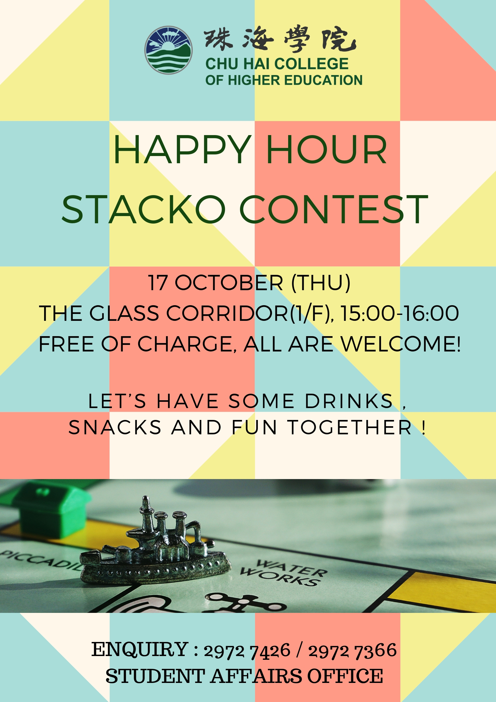 2018-2019 Events Homepage HAPPY HOUR – STACKO CONTEST by saojob|Published 2 October 2019-Updated 4 October 2019