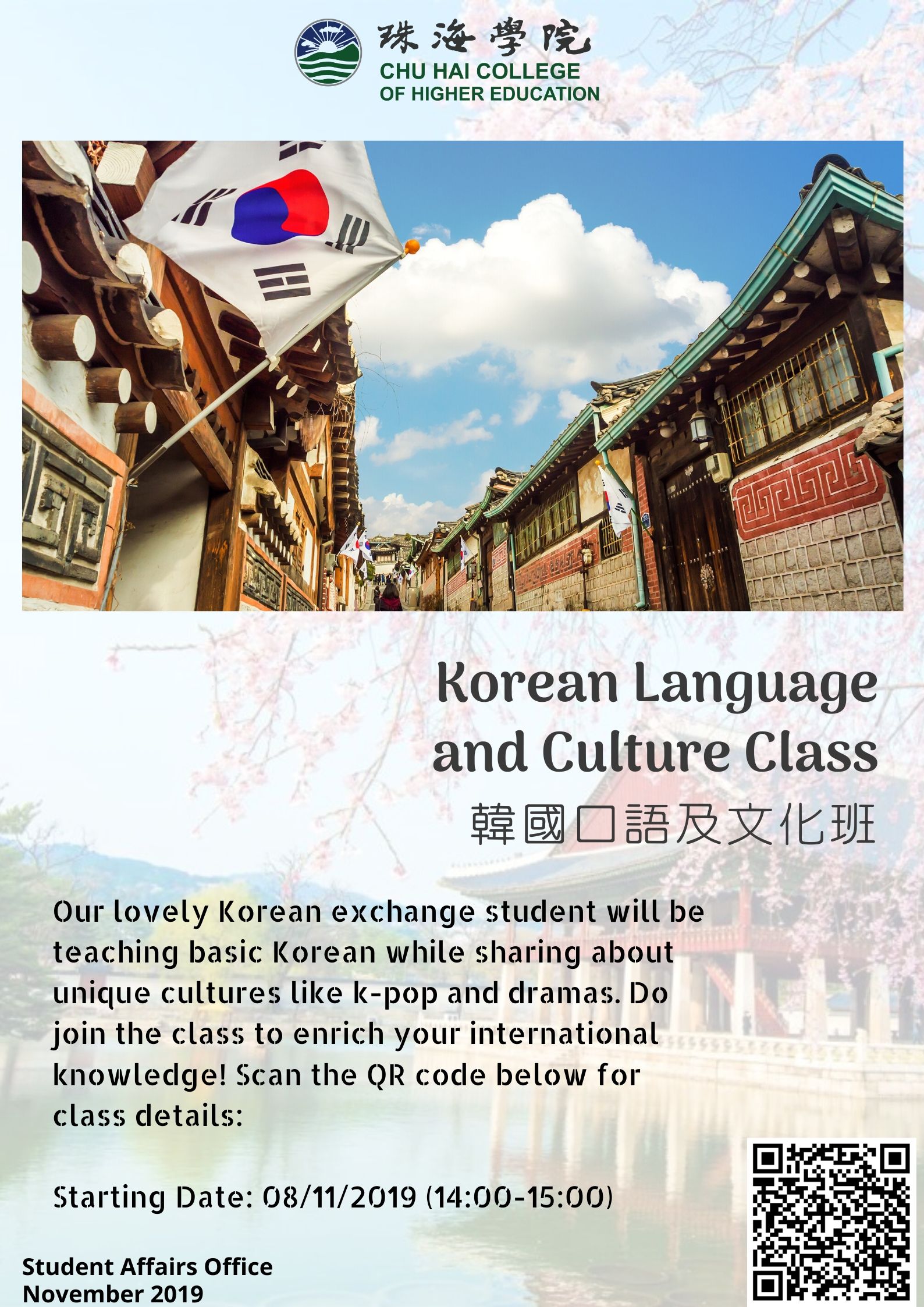 Following the Cultural Exchange Day, our exchange students from Korea and Germany would like to teach us their home language through sharing about their culture. If you wish to widen your international knowledge, please take this opportunity to join these fun and rewarding classes!