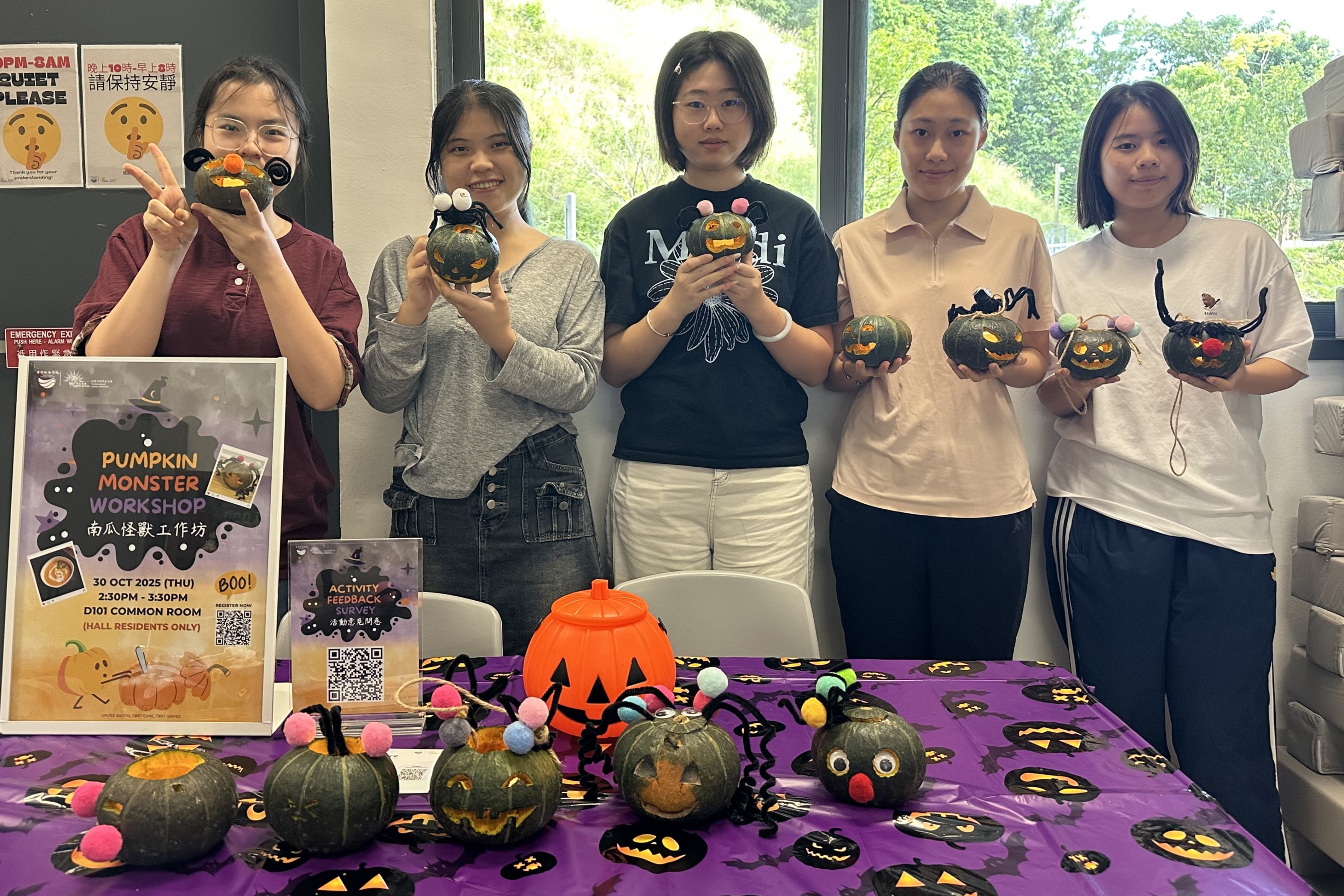 The Student Affairs Office held the “Halloween Pumpkin Monster Workshop” in Student Residential Hall on 30 October 2025. Hall residents crafted their own unique pumpkin monsters by hand, unleashing their creativity! We also cooked the sweet heart-warming pumpkin soup, sharing warmth and joy with everyone.