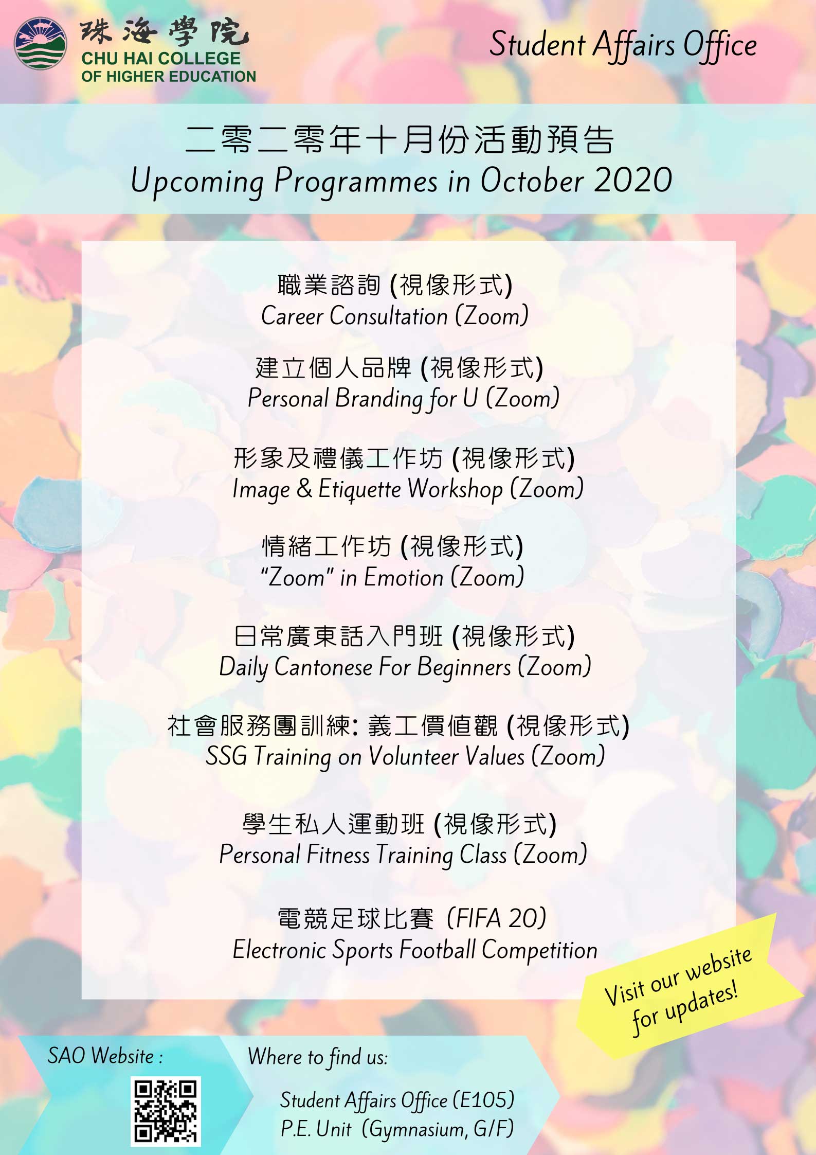 2020-21 Events Homepage Upcoming Programmes in October 2020 by saoeditor|Published 23 September 2020-Updated 23 September 2020